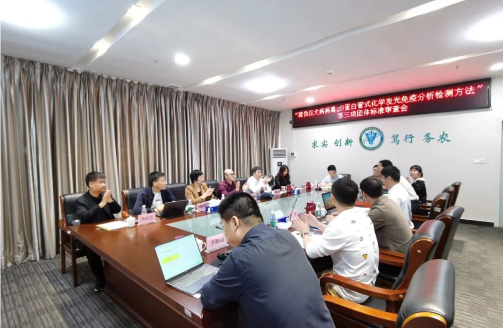 4月12日,由广州市中标品牌研究院主办的《猪伪狂犬病病毒gB蛋白管式化学发光免疫分析检测方法》等三项团体标准审查会在广东省农业科学院动物卫生研究所成功召开。参会人员有:广东省企业创新发展协会标委会有关负责人 、标准起草单位代表、审查组专家等。广东省企业创新发展协会标委会主任、广州市中标品牌研究院院长李武贤出席会议并致辞。
